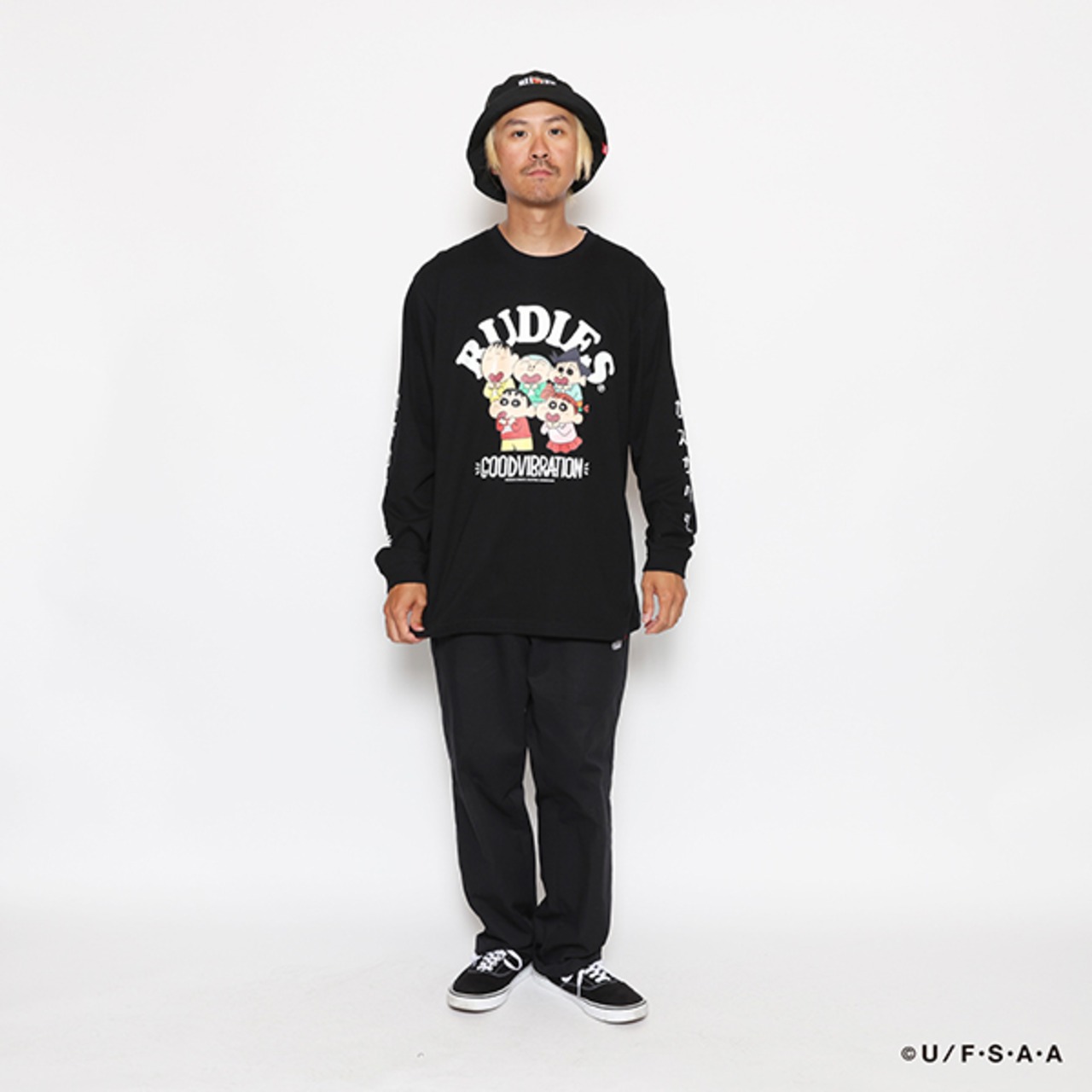 国民的人気アニメ「クレヨンしんちゃん」とRUDIE'Sのコラボレーション。クレヨンしんちゃんのオリジナルグラフィックに、RUDIE'Sテイストを加えたストリート感あふれる仕上がりとなっています。