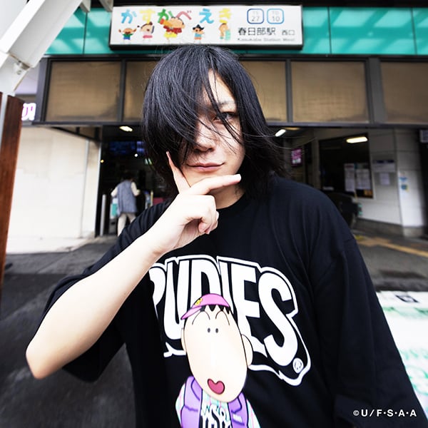 国民的人気アニメ「クレヨンしんちゃん」とRUDIE'Sのコラボレーション。クレヨンしんちゃんのオリジナルグラフィックに、RUDIE'Sテイストを加えたストリート感あふれる仕上がりとなっています。